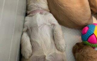 Onze Bobbi groeit hartstikke goed en is de grootste doodle in het nest vandaag. Gelukkig doen al haar labradoodle broertjes en zusjes het ook goed. Bobbi weegt vandaag 817 gram. Een beste dame dus al! Teddy heeft het maar druk met al haar kleintjes. De kleintjes worden met de dag bewegelijker en speelser. Elke dag weer leuk om te zien dat alle pups het zo goed doen.