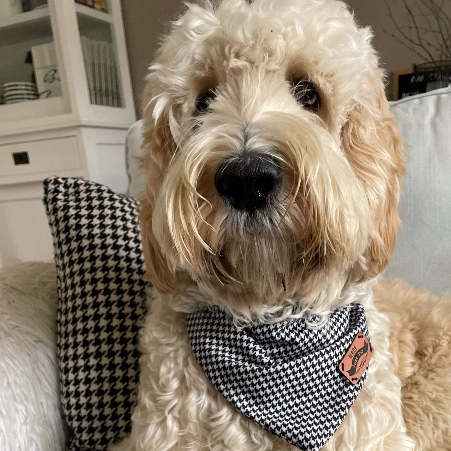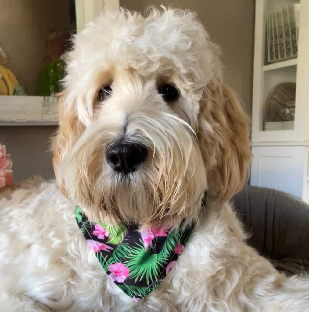 Bobbi is dol op bandana’s jij ook? Kijk eens op ali, bol of bij je plaatselijke dierenwinkel. Let wel op de maat. Bobbi haar bandana’s zijn ca 40 x 40 x 60cm en dan passen het prima bij deze labradoodle.