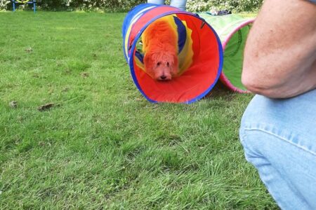 Vandaag was het weer oefenen en voor het eerst was het een puppycursus met beide baasjes. Gisteren vertelde ik al over de vakantieplannen. Het baasje had vandaag zijn eerste vakantiedag en ging dus mee met vrouwtje en mij naar de puppycursus. Gezellig dus met z’n drietjes er op uit, naar de cursus bij Leren kan …