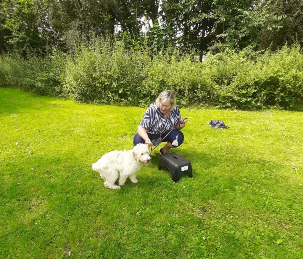 Maar goed ik vandaag met het vrouwtje op pad naar onze eerste les puppycursus. Blijkt dat heel dicht bij ons thuis te zijn. Nou ja! Ik dacht eerst gezellig stukje autorijden. Gaan we lopen, lekker dan. Maar wel gaaf toen we er waren, maar liefst met 6 puppy’s. Kijk dat maakt het een stuk gezelliger! Nou moet je luisteren naar wat vrouwtje zegt. Luister ik krijg ik snoepje. Dus uurtje luisteren is een volle buik en ook nog eens leuk voor deze labradoodle!